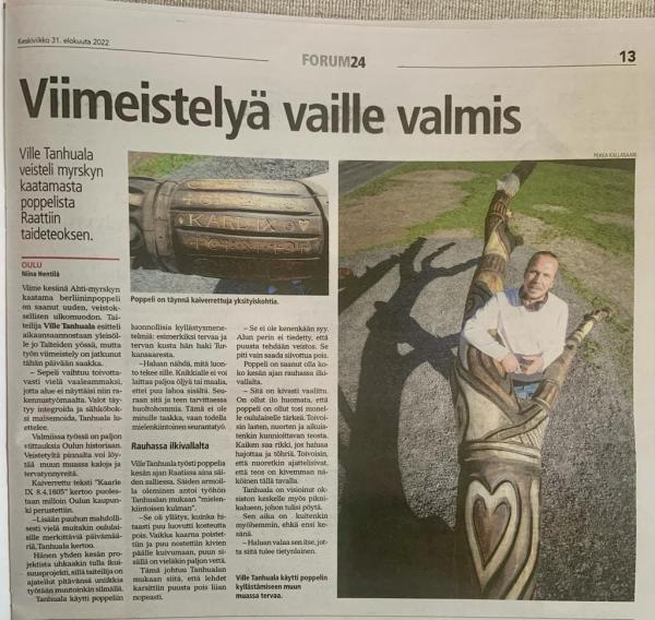 "Luonnon ja urbaanin elämän vuoropuhelu veistos" Raatinsaari Oulu 2022