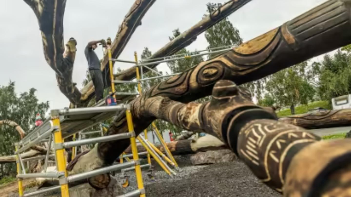 "Luonnon ja urbaanin elämän vuoropuhelu veistos" Raatinsaari Oulu 2022